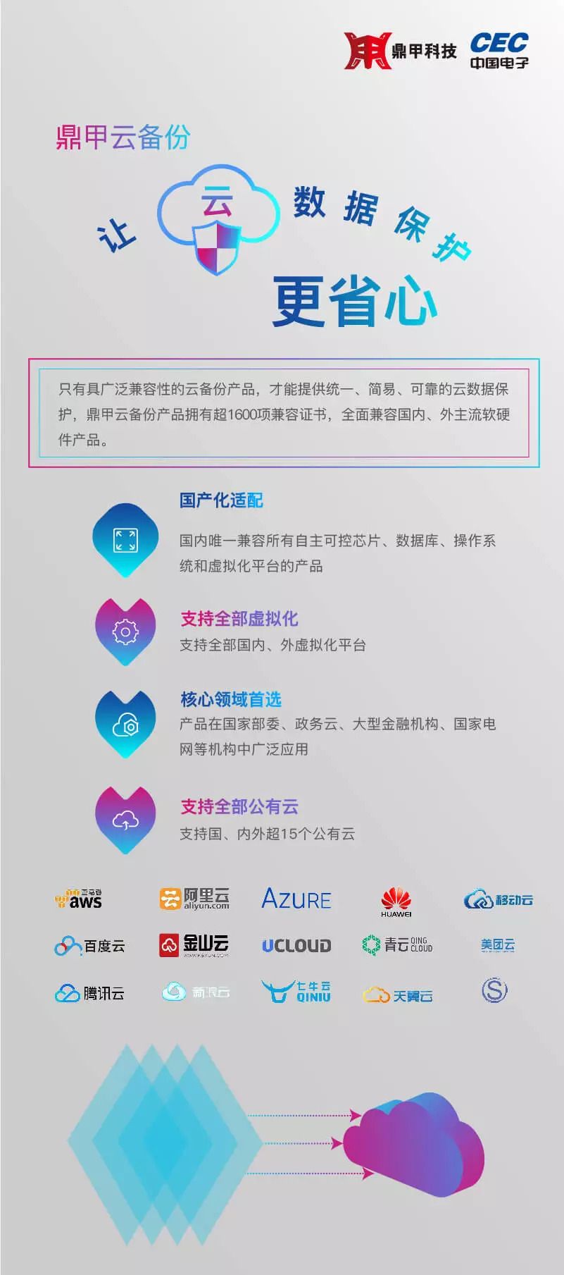 把數據存放在同一朵云里,正如本文提及的事件,萬一該云遭遇不測,難逃數據徹底丟失的風險。為加強保障,可以把該朵云中的數據,備份至其它云中。例如從騰訊云備份至阿里云、華為云中,這個叫“異構云備份(跨云備份)”。用戶透過鼎甲DBackup數據保護平臺,只要簡單部署,便可以輕松、快速地實現自動化跨云數據災備。云供應商丟失數據的概率本來不高,讓數據在多個云里存儲備份,可以大大降低丟失風險。