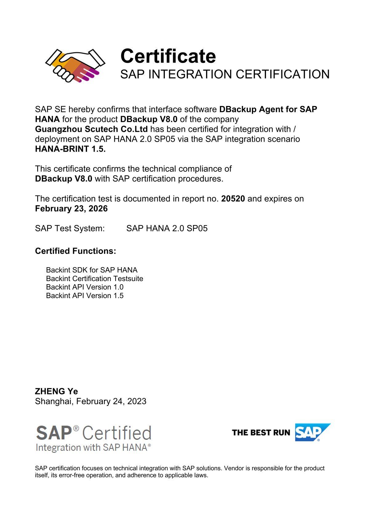 早在2019年,鼎甲 DBackup 就通過(guò)“Backint for SAP HANA” 官方認(rèn)證,成為全球20個(gè)獲認(rèn)證的數(shù)據(jù)保護(hù)產(chǎn)品之一,國(guó)際生態(tài)建設(shè)邁出關(guān)鍵一步。