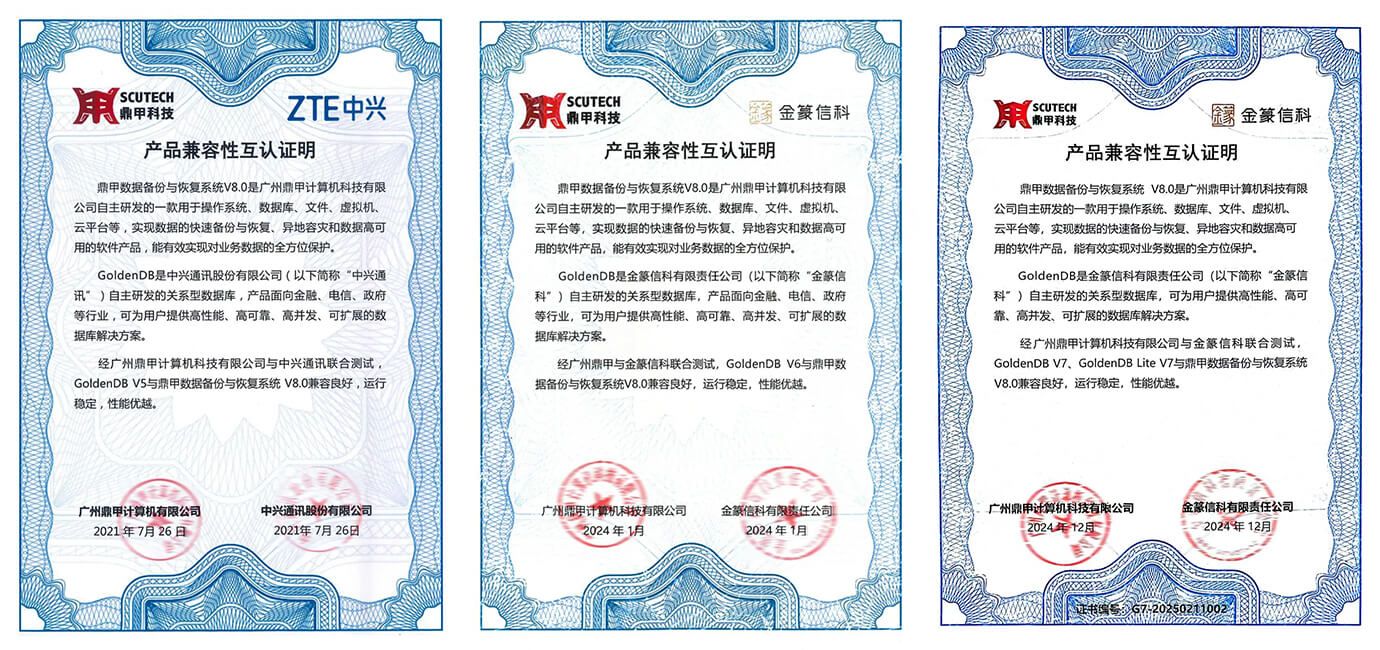 值得一提的是,鼎甲與 GoldenDB 的兼容認(rèn)證并非首次。在 GoldenDB 的歷史版本(包括V5、V6)中,鼎甲數(shù)據(jù)備份與恢復(fù)系統(tǒng)已多次完成兼容性測(cè)試,并保持長(zhǎng)期穩(wěn)定的技術(shù)適配,這體現(xiàn)了鼎甲在信創(chuàng)數(shù)據(jù)庫(kù)生態(tài)建設(shè)中的持續(xù)投入。