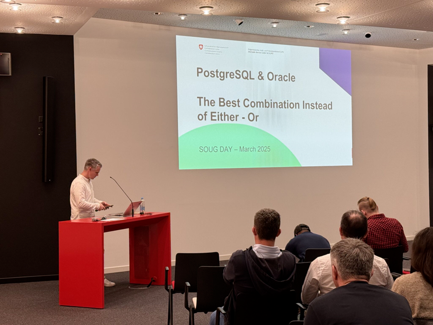 本次大會是 SOUG 與 SwissPUG 首次聯(lián)合舉辦的重要活動,吸引了來自 Oracle、CERN、EDB 等國際知名機(jī)構(gòu)的數(shù)據(jù)庫專家,包括 Mike Dietrich、Daniel Westermann、Laurenz Albe 和 Dani Schnider 等業(yè)界資深講者。會議以“融合協(xié)同”為主題,探索企業(yè)級數(shù)據(jù)庫與開源數(shù)據(jù)庫之間的兼容共生與技術(shù)互補(bǔ)。