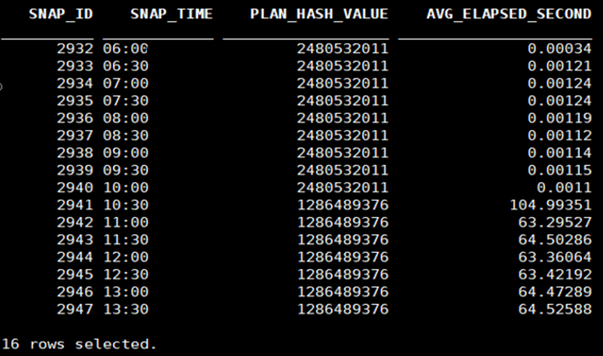 然而,通過 ASH 深入追蹤,可以精準(zhǔn)識別出實際執(zhí)行計劃切換發(fā)生在?10:15,也就是 AWR 沒能捕捉到的時間點。