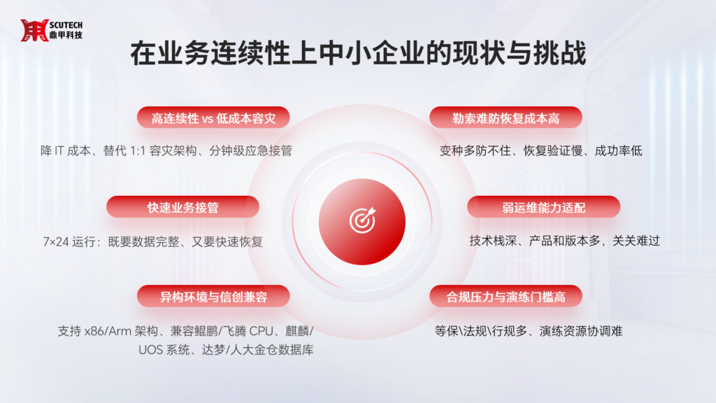 隨著數字化建設的持續深入,中小企業在業務連續性方面面臨多重挑戰: