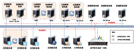在客戶內網部署一臺鼎甲信息倉,實現對數據庫與應用系統的數據備份保護;同時能夠實現操作系統的整機備份,當物理服務器硬件故障引起操作系統故障時,可以將整機操作系統恢復到新的硬件平臺上。